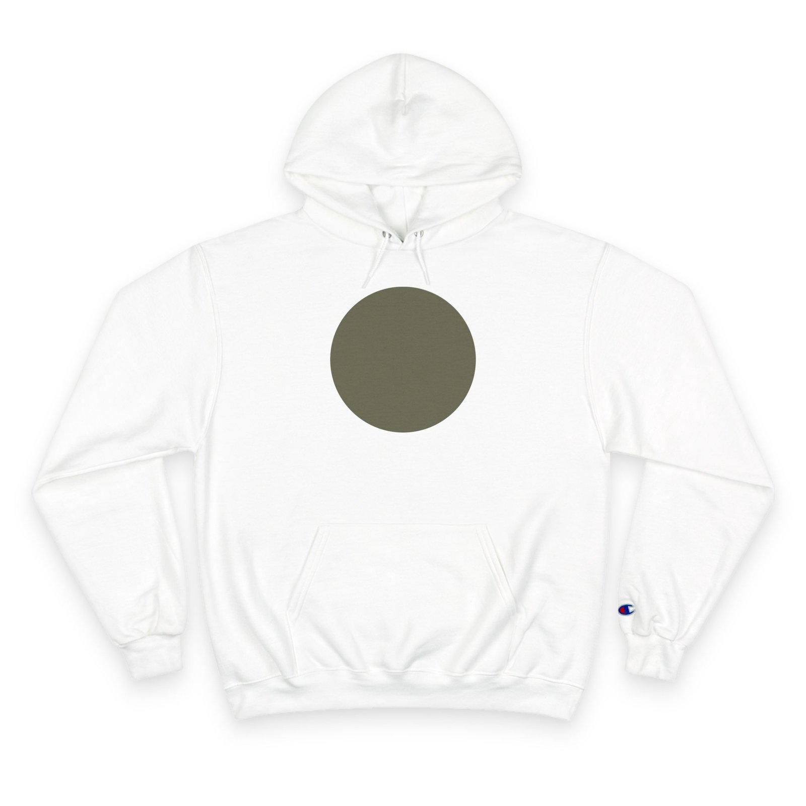 Minimal Circle Champion Hoodie — Olive Dot Graphic Pullover